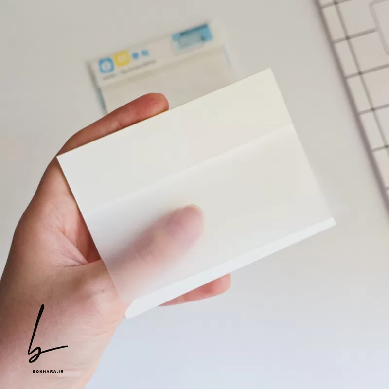 استیک نوت شفاف بی‌رنگ یه انتخاب کاربردی و مینیمال برای یادداشت‌های روزمره‌ست. به‌خاطر شفاف بودن، متن یا تصویر زیرش کاملاً قابل مشاهده است و ظاهر شلوغ ایجاد نمی‌کند. مناسب برای هایلایت کردن، نوشتن نکته روی کتاب یا جزوه، یا حتی علامت‌گذاری اسناد بدون اینکه آسیبی به صفحه اصلی بزند.