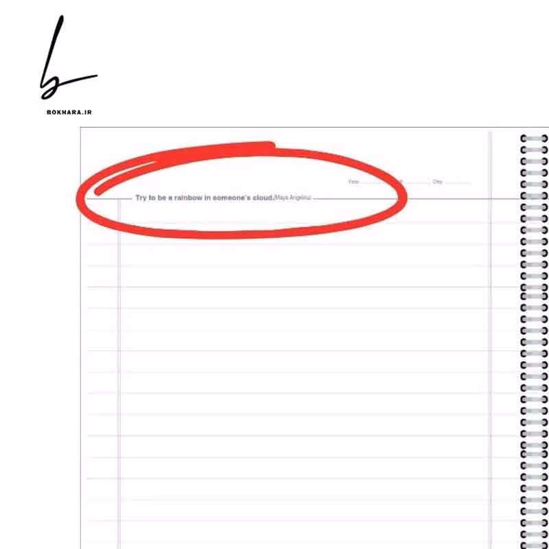 در هر برگ دفتر یک کلام از کلمات قصار مشاهیر بزرگ جهان به زبان انگلیسی چاپ شده است.