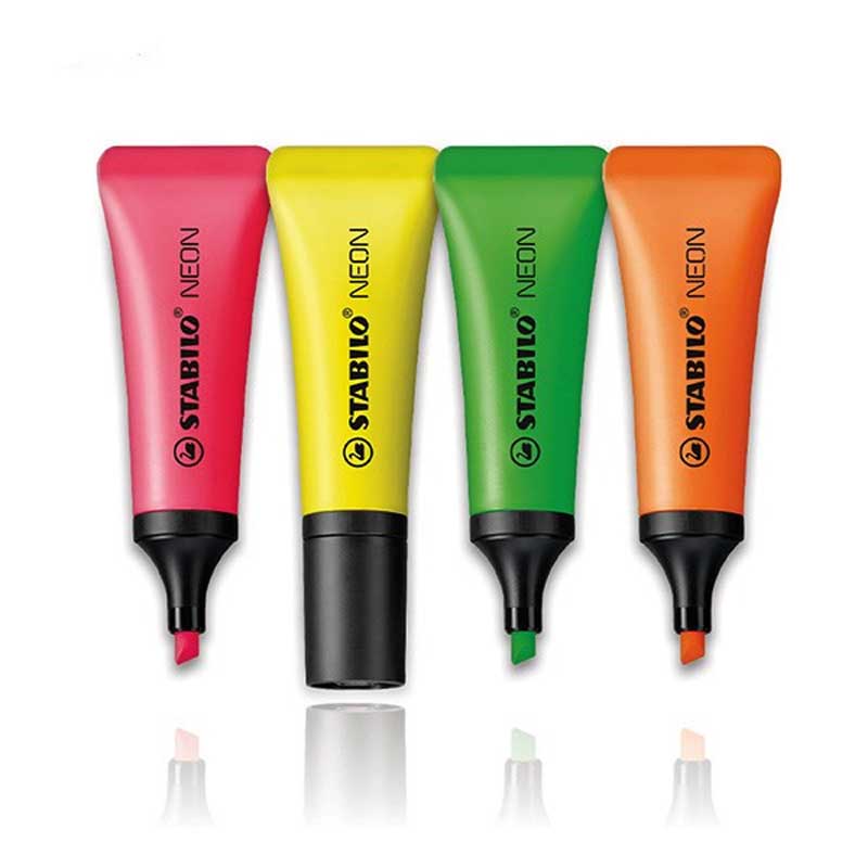 شرکت استابیلو محبوب ترین ماژیک های علامت گذار در دنیا را دارد. ماژیک هایلایتر مدل NEON به علت طراحی خاص و منحصر به فرد خود طرفداران زیادی دارد. بدنه این ماژیک انعطاف پذیر است و در هنگام استفاده فشاری به انگشتان وارد نمی کند. این هایلایتر خطی به ضخامت 2.5 میلی متر ترسیم میکند.