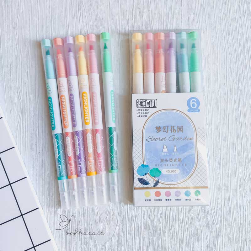ماژیک هایلایتر و روان نویس نوک نمدی دو سر Secret Garden شش رنگ