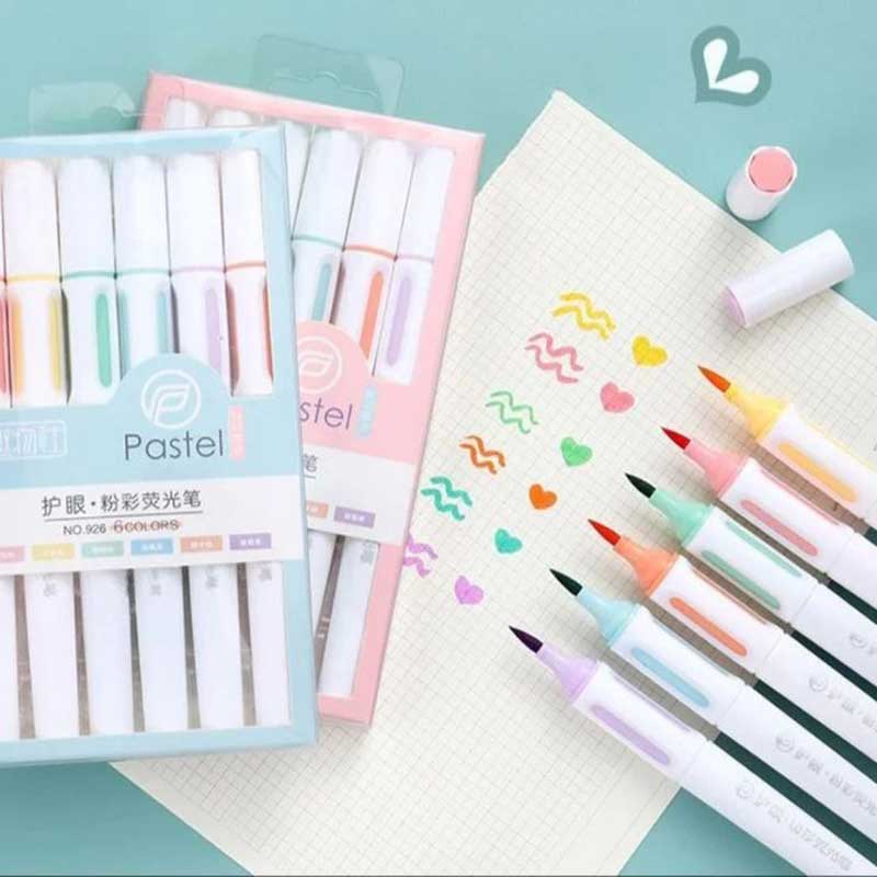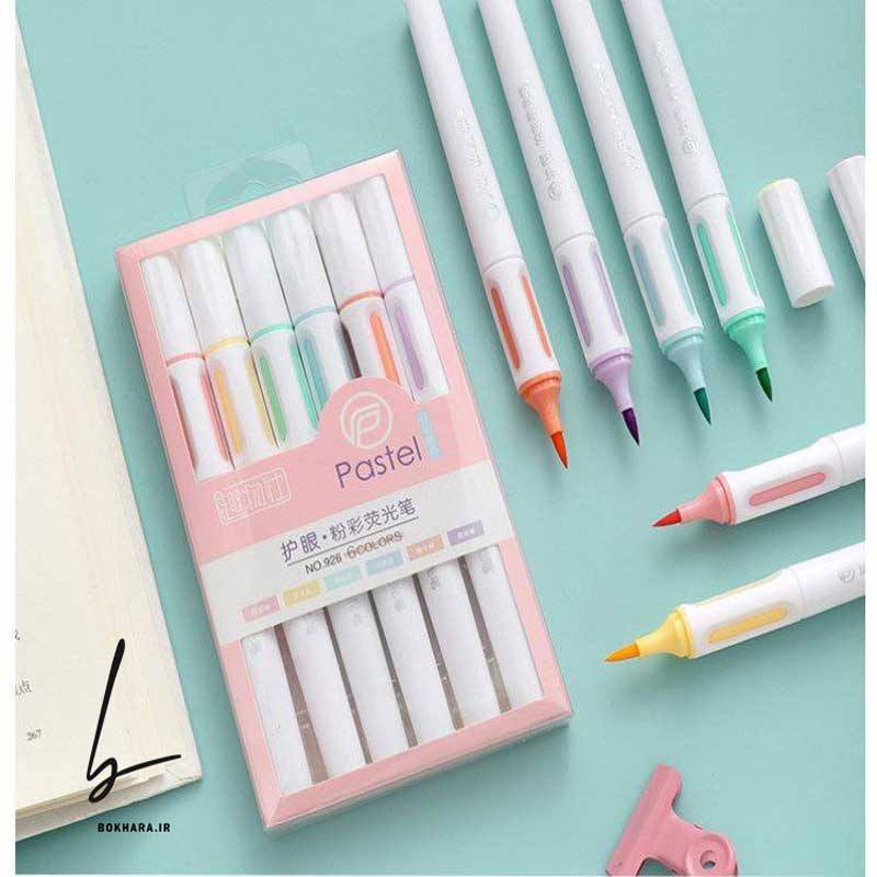 ماژیک هایلایتر پاستلی سر براشی مجموعه 6 عددی