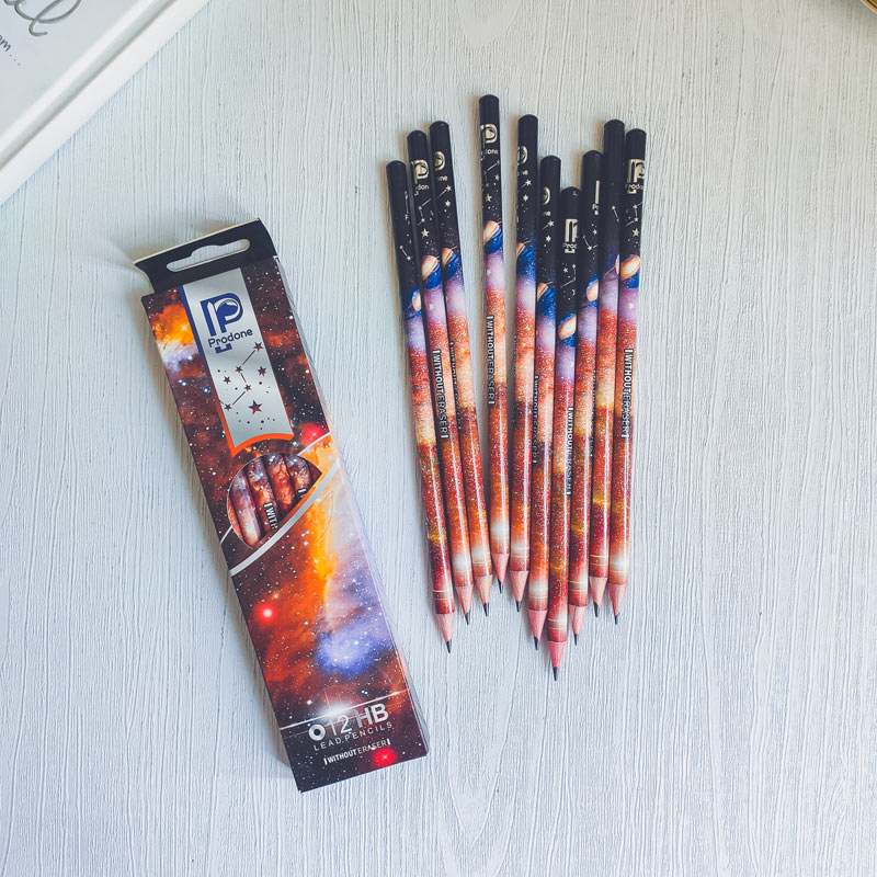 مداد مشکی پرودون مدل کهکشانی در دو رنگ بدنه قرمز و نارنجی